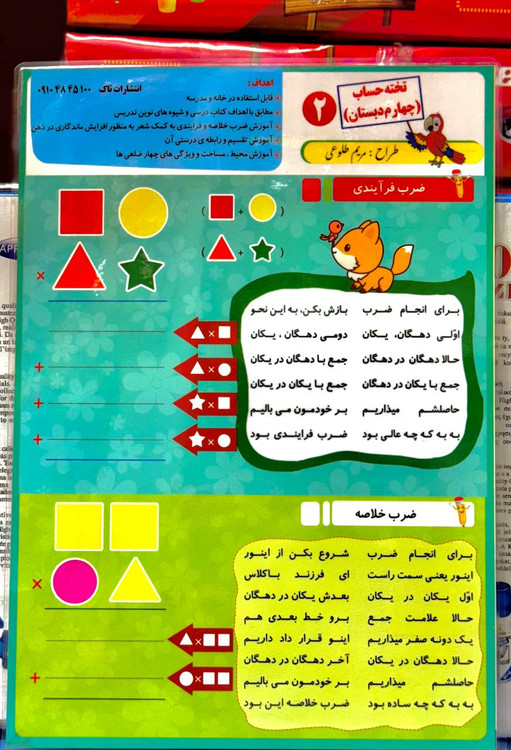 لمینت پایه چهارم دبستان (2) از مجموعه آموزشی رنگین تاک، یکی از تختههای تمرینی تخصصی برای دانشآموزان کلاس چهارم است که با هدف تقویت مفاهیم ریاضی و فارسی طراحی شده. این تختهها به صورت لمینتشده، سایز A4 و قابل استفاده با ماژیک وایتبرد هستند و امکان تمرینهای مکرر و پاککردن آسان را فراهم میکنند.