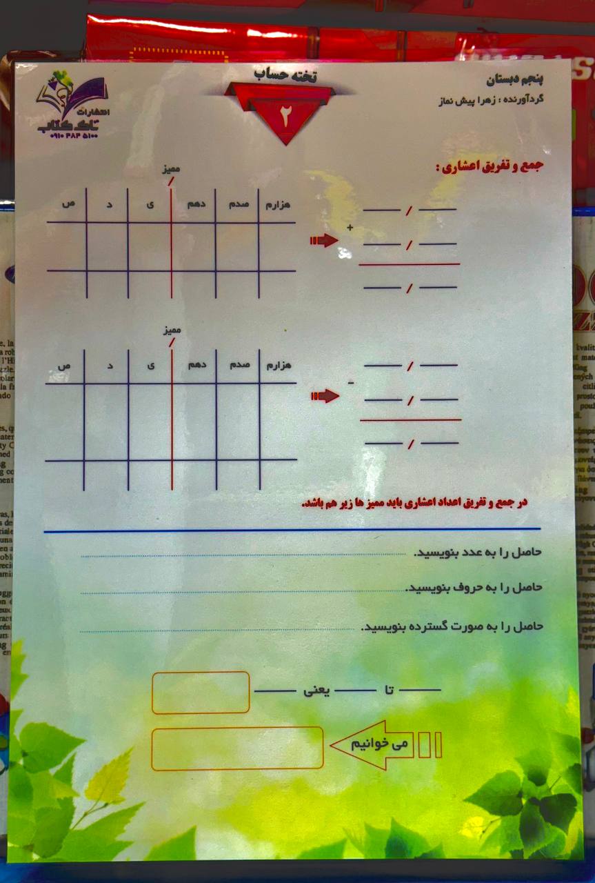 🧮 ویژگیهای تخته حساب شماره ۲ پایه پنجم: