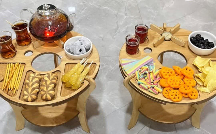 استند قلیان چوب روس ضخیم وارمر دار با پیاله چینی