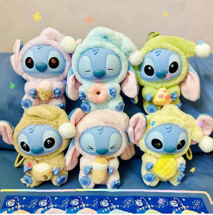 - طراحی متنوع و سورپرایزی: هر عروسک استیچ با لباس خواب متفاوت و رنگهای پاستلی مثل صورتی، آبی، بنفش و زرد طراحی شده. بعضیها چشمهاشون بازه، بعضی بسته، و هر کدوم یه حالت خاص دارن.