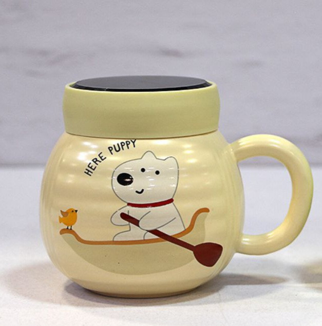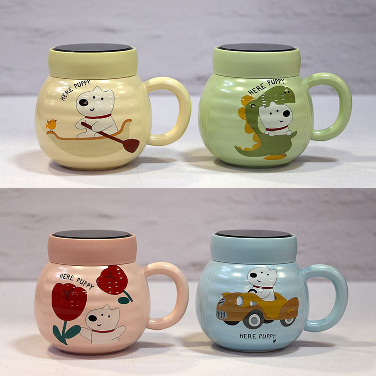 ماگهای سرامیکی با طرحهای کارتونی مثل مجموعه "HERE PUPPY" واقعاً دلربا و خاصاند! این مدلها با رنگهای پاستلی و شخصیت سگ کارتونی در موقعیتهای مختلف (مثل رانندگی، بازی با گلها، لباس دایناسوری و ...) طراحی شدهاند و حس شادی و کودکانهای به فضای آشپزخانه یا میز کار میدن.