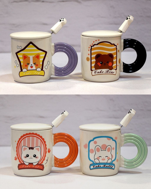 ماگ سرامیک وارداتی درب دار قاشق دار فانتزی